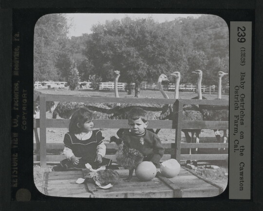 Baby Ostriches on the Cawston Ostrich Farm, Cal., ca. 1920s