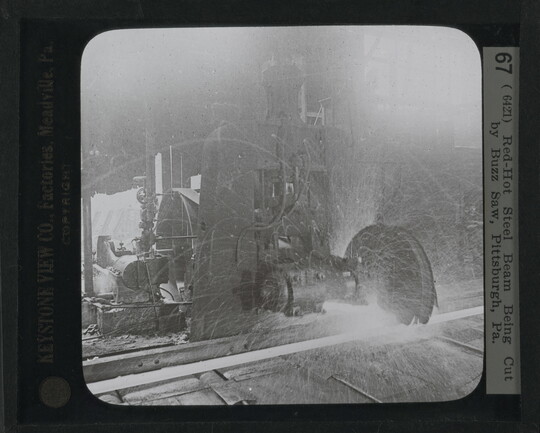 Red-Hot Steel Beam being Cut by Buzz Saw, Pittsburgh, Pa., ca. 1920s