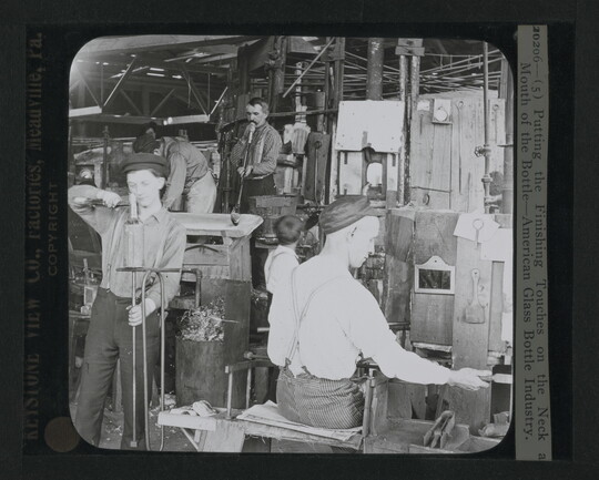 Putting the Finishing Touches on the Neck and Mouth of the Bottle, American Glass Bottle Industry, ca. 1907