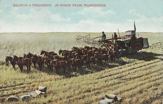 Reaping & Thrashing (30 Horse Team) Washington, ca. 1910