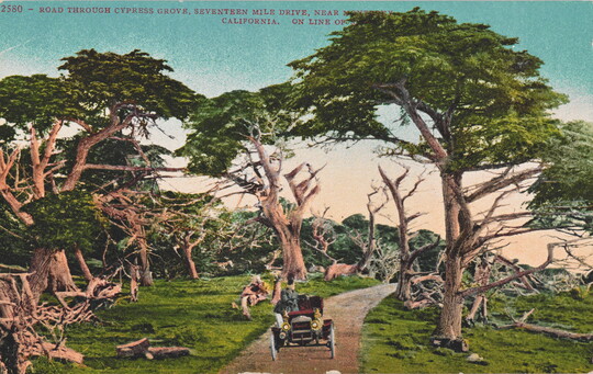 Road Through Cypress Grove, Seventeen Mile Drive, near Monterey California, ca. 1907-1915