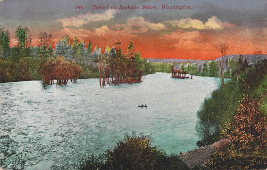 Sunset on Spokane River, Washington, ca. 1907-1923