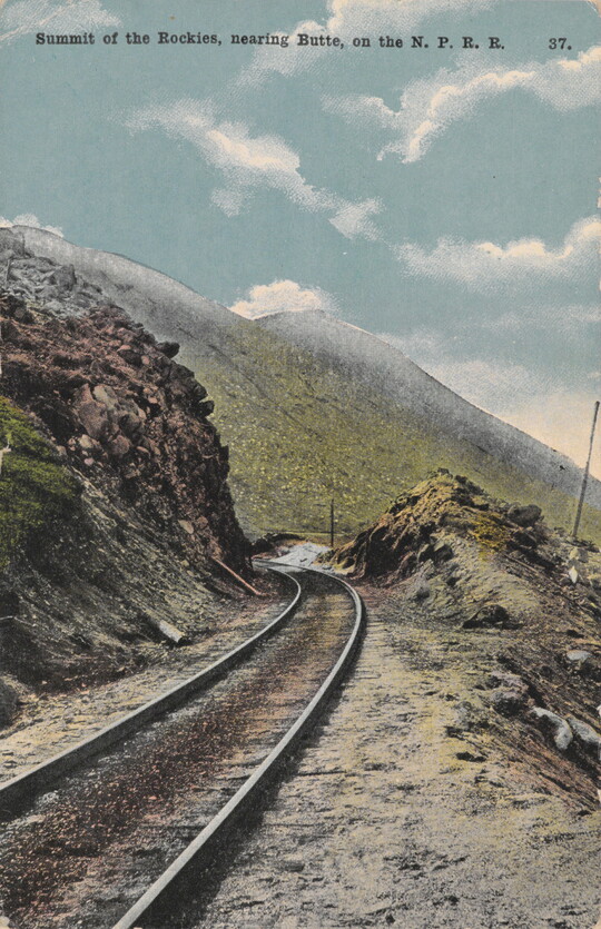 Summit of the Rockies, nearing Butte, on the N. P. R. R., ca. 1907-1915