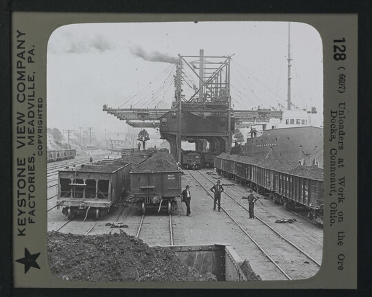 Unloaders at Work on the Ore Docks, Conneaut, Ohio., ca. 1915
