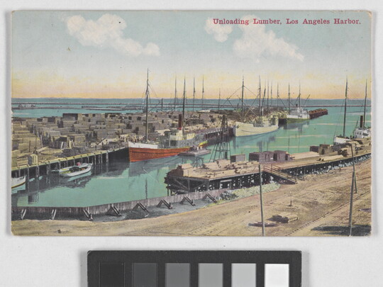 Unloading Lumber, Los Angeles Harbor, ca. 1907-1918