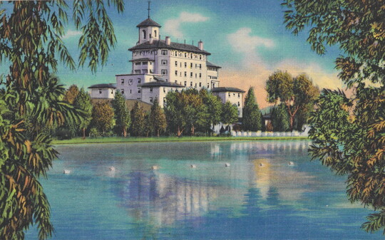 Vista of Broadmoor Hotel from the Lake, Pike's Peak Region, Colorado, ca. 1940