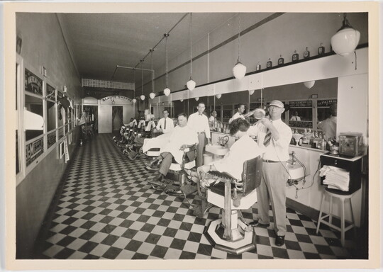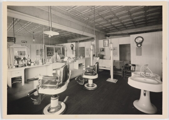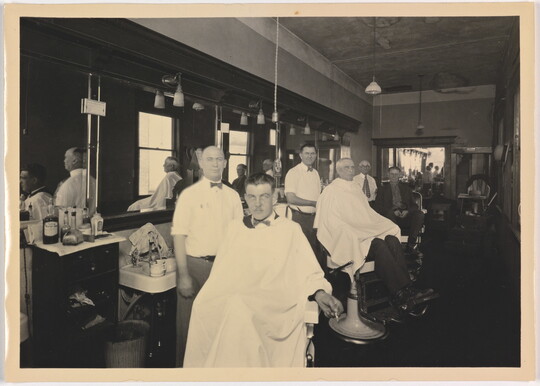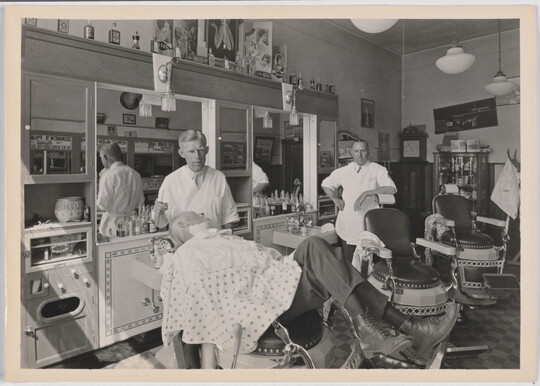 [Barber shop interior, Ruston, Louisiana], ca. 1920