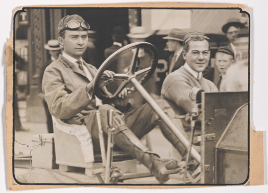 [Ben Loy and Shannon Lees in Stearns car], 1909