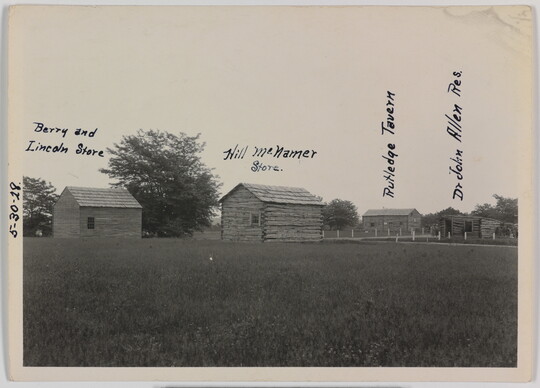 [Berry & Lincoln Store, Hill McNarner Store, Rutledge Tavern, and Dr. John Allen residence, New Salem, Illinois], 1928