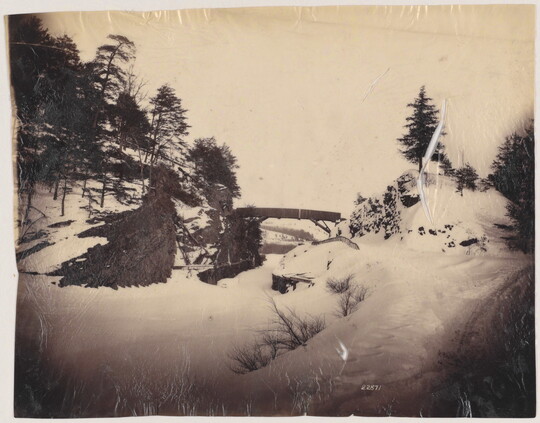 [Bridge over snowy riverbed], ca. 1880-1890