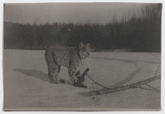 [Bobcat caught in trap], ca. 1900