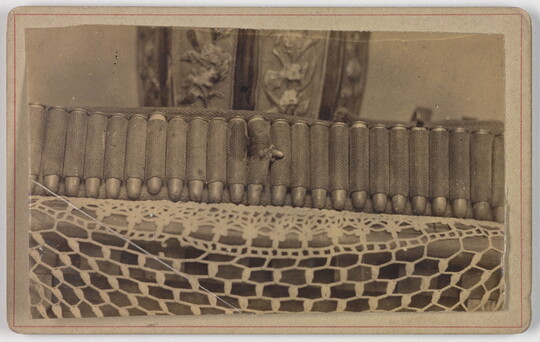 [Bullet-pierced bandolier of Dan Oniell, Company B, 1st Colorado Infantry], ca. 1898