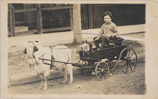 [Boy in goat-drawn cart], ca. 1910