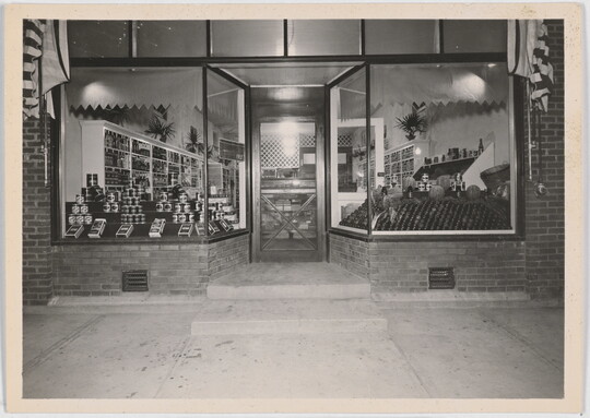 [Grocery store window displays, Julesburg, Colorado], 1932