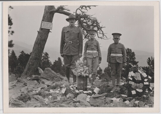 [Group portrait at grave of Buffalo Bill], ca. 1920