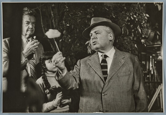 [Karl Struss, Mario Mattoli, and unknown actor on set of "The Smallest Show on Earth"], Rome, Apr. 15, 1953