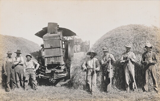 [R.B. Hubb's outfit baling hay, Byers, Colorado], 1913