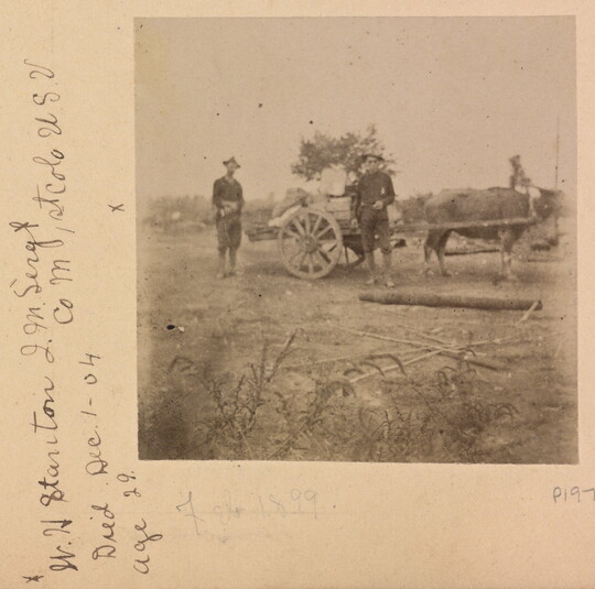 [Two American soldiers and carabao cart], ca. 1898-1902