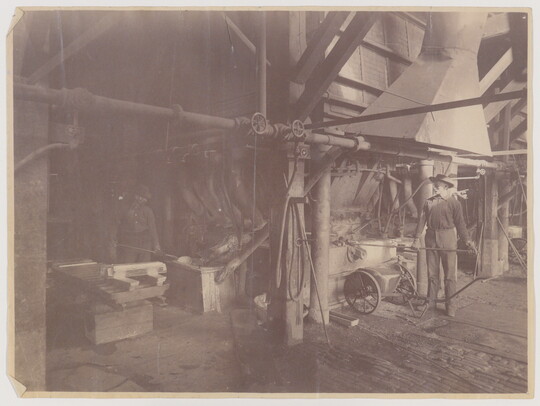 [Two men smelting], ca. 1870-1900