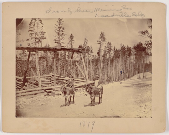 [Two children on donkeys at Iron Silver Mining Co., Leadville, Colorado], 1879