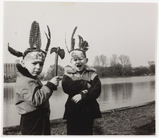 [Two boys playing Indian], 1950s