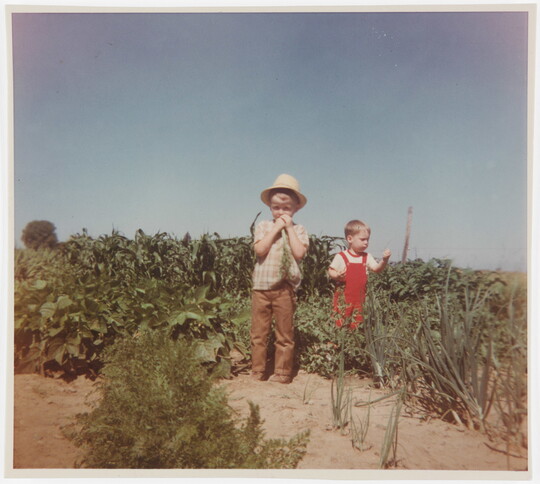 [Two children in vegetable garden], ca. 1964