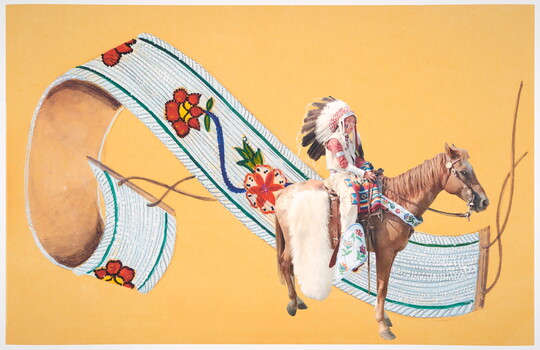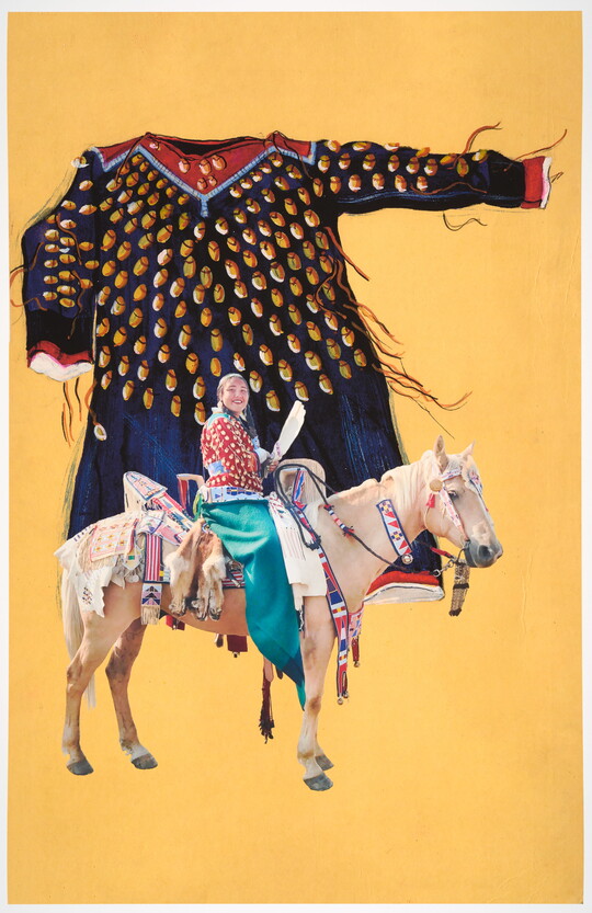 Multimedia artist Wendy Red Star is best known for her photographic practice, which interrogates the relation between settler colonialism and Indigenous worldviews and histories. Red Star, an enrolled member of the Apsáalooke (Crow) Nation, employs appropriation, humor, and Crow traditions to expand the understanding of Indigenous art and critically revisit 19th-century depictions of Great Plains peoples. The artist has received numerous recognitions including a Louis Comfort Tiffany Award in 2017, a Smithsonian Artist Research Fellowship in 2018, and a MacArthur Fellowship in 2024. Red Star earned a BFA from Montana State University, Bozeman, and an MFA from the University of California, Los Angeles. The first retrospective of her work, Wendy Red Star: A Scratch on the Earth, took place at the Newark Museum of Art in 2019.
