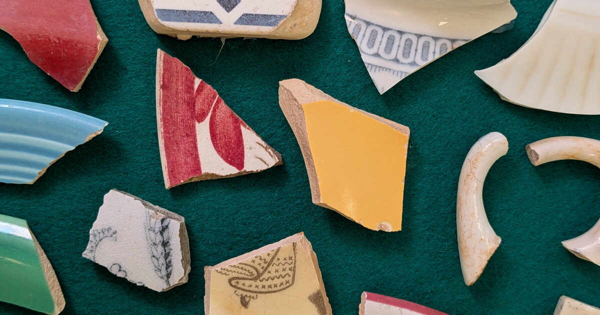 Crecimiento de moho en los bordes sin esmaltar de fragmentos cerámicos.