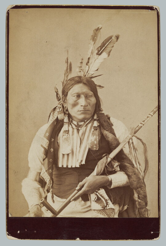 In 1879, Congress established the Bureau of Ethnology, later the Bureau of American Ethnology (BAE), to collect and maintain Euro-American knowledge about Indigenous nations. Led by surveyor John Wesley Powell, the Bureau’s archaeologists, anthropologists, linguists, and researchers were motivated by the false “vanishing race” theory, which held that Indigenous ways of life were doomed to fade away and consequently needed to be studied and documented. The BAE gathered thousands of existing photographs and continued to generate more—especially of Native diplomats who came to Washington, DC, to negotiate with the U.S. government—until it merged with other Smithsonian Institution divisions in the 1960s.