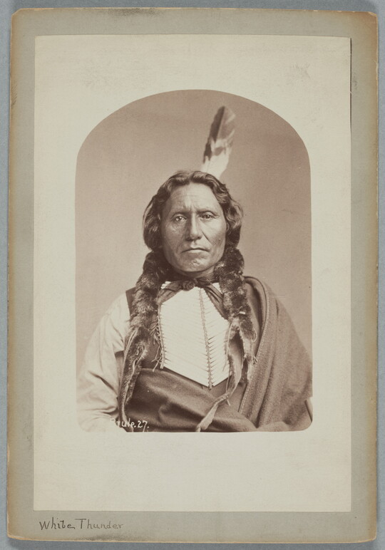 In 1879, Congress established the Bureau of Ethnology, later the Bureau of American Ethnology (BAE), to collect and maintain Euro-American knowledge about Indigenous nations. Led by surveyor John Wesley Powell, the Bureau’s archaeologists, anthropologists, linguists, and researchers were motivated by the false “vanishing race” theory, which held that Indigenous ways of life were doomed to fade away and consequently needed to be studied and documented. The BAE gathered thousands of existing photographs and continued to generate more—especially of Native diplomats who came to Washington, DC, to negotiate with the U.S. government—until it merged with other Smithsonian Institution divisions in the 1960s.