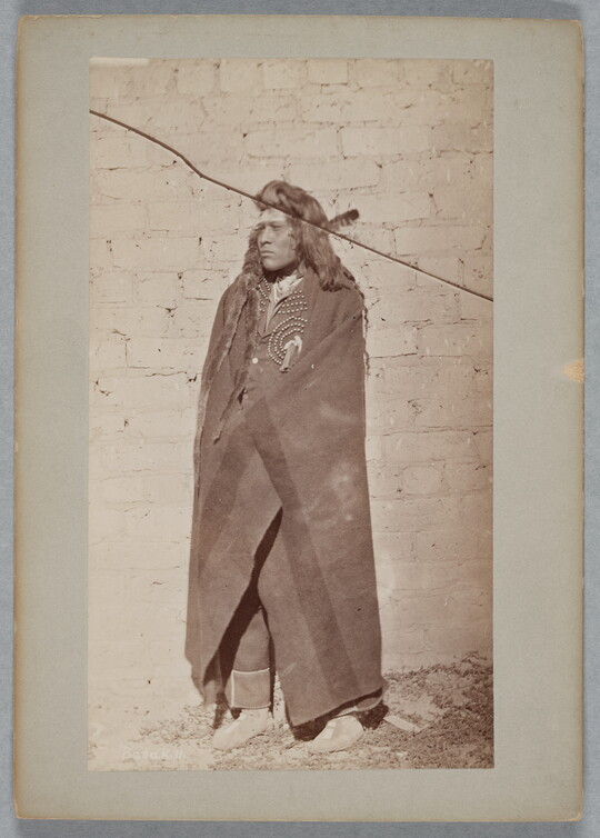 In 1879, Congress established the Bureau of Ethnology, later the Bureau of American Ethnology (BAE), to collect and maintain Euro-American knowledge about Indigenous nations. Led by surveyor John Wesley Powell, the Bureau’s archaeologists, anthropologists, linguists, and researchers were motivated by the false “vanishing race” theory, which held that Indigenous ways of life were doomed to fade away and consequently needed to be studied and documented. The BAE gathered thousands of existing photographs and continued to generate more—especially of Native diplomats who came to Washington, DC, to negotiate with the U.S. government—until it merged with other Smithsonian Institution divisions in the 1960s.