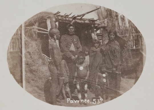 In 1879, Congress established the Bureau of Ethnology, later the Bureau of American Ethnology (BAE), to collect and maintain Euro-American knowledge about Indigenous nations. Led by surveyor John Wesley Powell, the Bureau’s archaeologists, anthropologists, linguists, and researchers were motivated by the false “vanishing race” theory, which held that Indigenous ways of life were doomed to fade away and consequently needed to be studied and documented. The BAE gathered thousands of existing photographs and continued to generate more—especially of Native diplomats who came to Washington, DC, to negotiate with the U.S. government—until it merged with other Smithsonian Institution divisions in the 1960s.