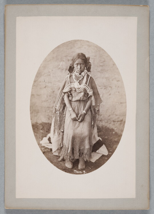In 1879, Congress established the Bureau of Ethnology, later the Bureau of American Ethnology (BAE), to collect and maintain Euro-American knowledge about Indigenous nations. Led by surveyor John Wesley Powell, the Bureau’s archaeologists, anthropologists, linguists, and researchers were motivated by the false “vanishing race” theory, which held that Indigenous ways of life were doomed to fade away and consequently needed to be studied and documented. The BAE gathered thousands of existing photographs and continued to generate more—especially of Native diplomats who came to Washington, DC, to negotiate with the U.S. government—until it merged with other Smithsonian Institution divisions in the 1960s.