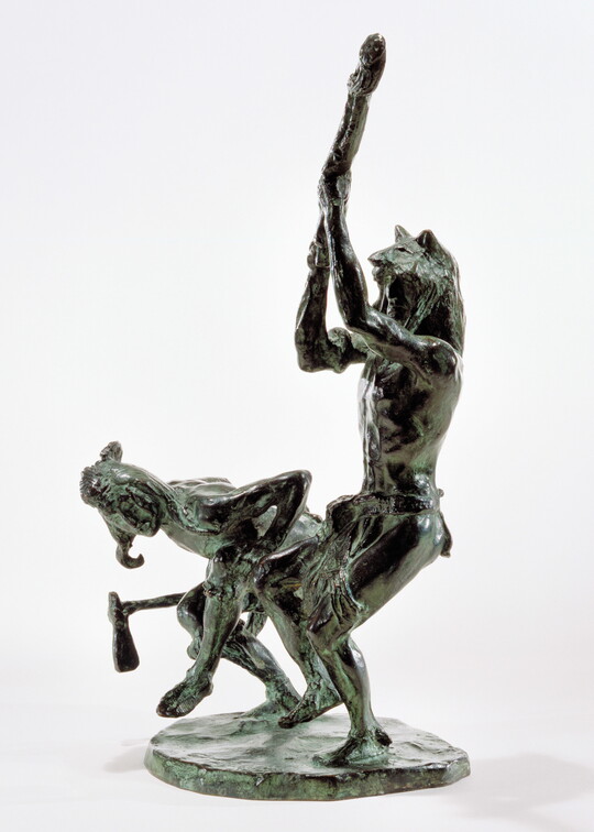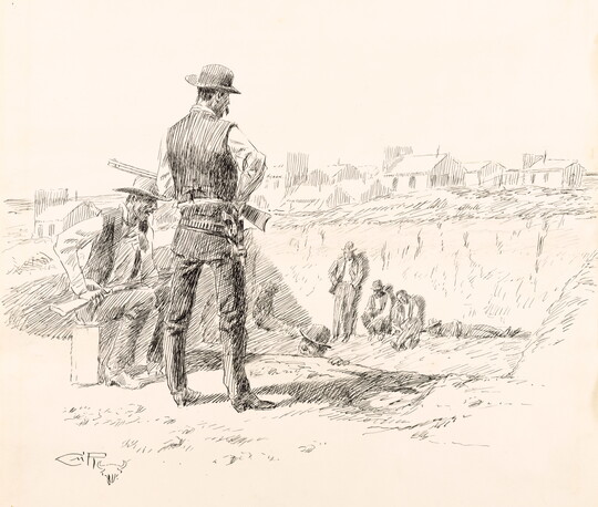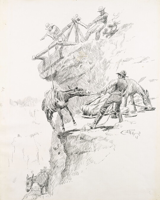 Mr. Carter began collecting art in 1935, when he acquired His First Lesson along with a group of nine Russell watercolors. His collection quickly expanded to include some of the artist’s best-known works. In 1941, he acquired a selection of artworks from the estate of Russell’s widow, Nancy Cooper Russell. Four years later, he purchased A Dash for the Timber from Washington University in Saint Louis, and in 1948 he acquired Buffalo Hunt [No. 39], a picture formerly owned and beloved by Rogers. In 1964, Cyrus Rowlett (C. R.) Smith, a close friend of Mr. Carter’s and the president of American Airlines, gifted a selection of Russell sculptures and illustrated letters to the museum, further enriching what was already one of the finest museum collections of Russell’s and Remington’s art.