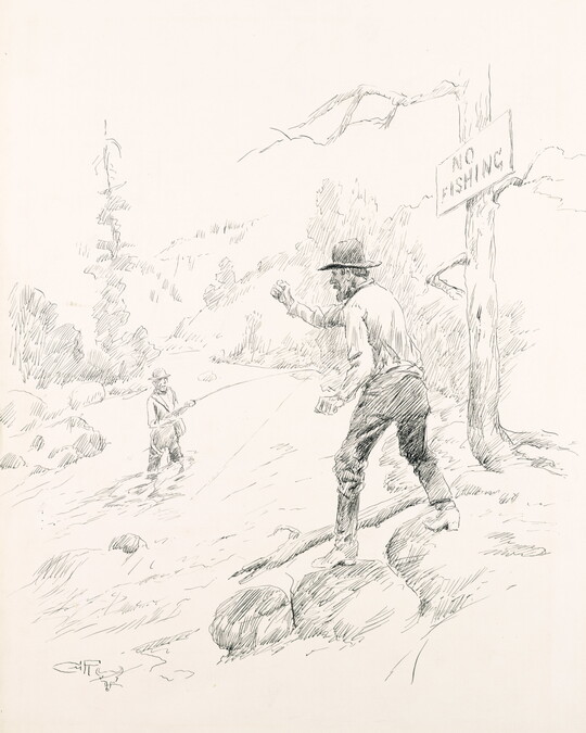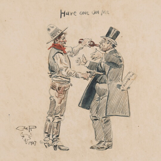Mr. Carter began collecting art in 1935, when he acquired His First Lesson along with a group of nine Russell watercolors. His collection quickly expanded to include some of the artist’s best-known works. In 1941, he acquired a selection of artworks from the estate of Russell’s widow, Nancy Cooper Russell. Four years later, he purchased A Dash for the Timber from Washington University in Saint Louis, and in 1948 he acquired Buffalo Hunt [No. 39], a picture formerly owned and beloved by Rogers. In 1964, Cyrus Rowlett (C. R.) Smith, a close friend of Mr. Carter’s and the president of American Airlines, gifted a selection of Russell sculptures and illustrated letters to the museum, further enriching what was already one of the finest museum collections of Russell’s and Remington’s art.