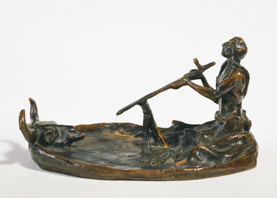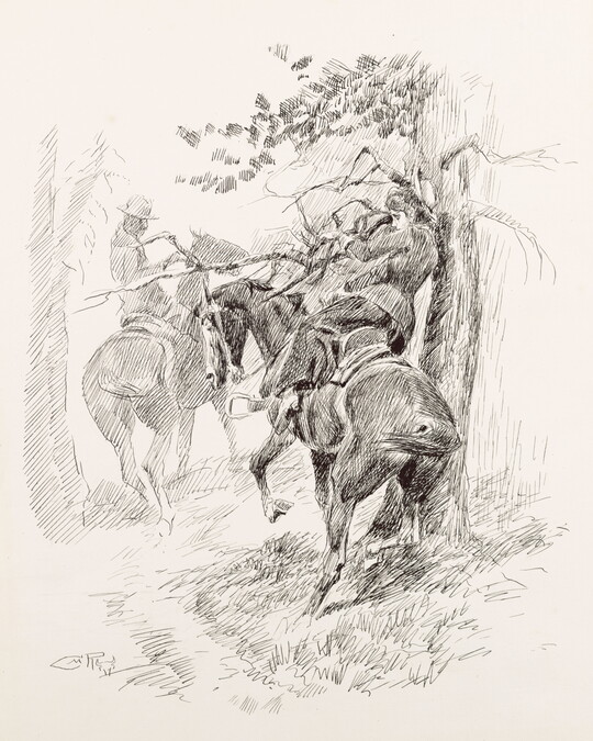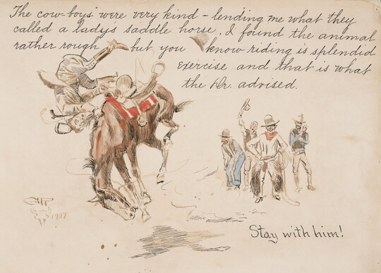Mr. Carter began collecting art in 1935, when he acquired His First Lesson along with a group of nine Russell watercolors. His collection quickly expanded to include some of the artist’s best-known works. In 1941, he acquired a selection of artworks from the estate of Russell’s widow, Nancy Cooper Russell. Four years later, he purchased A Dash for the Timber from Washington University in Saint Louis, and in 1948 he acquired Buffalo Hunt [No. 39], a picture formerly owned and beloved by Rogers. In 1964, Cyrus Rowlett (C. R.) Smith, a close friend of Mr. Carter’s and the president of American Airlines, gifted a selection of Russell sculptures and illustrated letters to the museum, further enriching what was already one of the finest museum collections of Russell’s and Remington’s art.