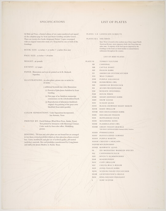Born in Rochester, Minnesota, on New Year’s Eve, 1942, Scott and Stuart Gentling moved with their family to Fort Worth, Texas, at the age of 5. They began collaborating on creative endeavors soon after and became professional artists in their twenties. In parallel careers that spanned more than 40 years, the brothers lived and worked together in Fort Worth, where they built a regional and national reputation for their watercolor paintings. Their artistic interests were far-ranging and included natural history, Aztec Mesoamerica, 18th-century fashion, landscape, and portraiture. The Carter houses more than 80 watercolors by the Gentlings, including the original bird paintings from their best-known project, Of Birds and Texas. The Carter is also home to the Scott and Stuart Gentling Papers, which offers an archive of letters, photographs, and essays by the brothers, along with more than 500 of their drawings and preparatory studies.