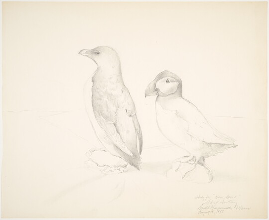 Born in Rochester, Minnesota, on New Year’s Eve, 1942, Scott and Stuart Gentling moved with their family to Fort Worth, Texas, at the age of 5. They began collaborating on creative endeavors soon after and became professional artists in their twenties. In parallel careers that spanned more than 40 years, the brothers lived and worked together in Fort Worth, where they built a regional and national reputation for their watercolor paintings. Their artistic interests were far-ranging and included natural history, Aztec Mesoamerica, 18th-century fashion, landscape, and portraiture. The Carter houses more than 80 watercolors by the Gentlings, including the original bird paintings from their best-known project, Of Birds and Texas. The Carter is also home to the Scott and Stuart Gentling Papers, which offers an archive of letters, photographs, and essays by the brothers, along with more than 500 of their drawings and preparatory studies.
