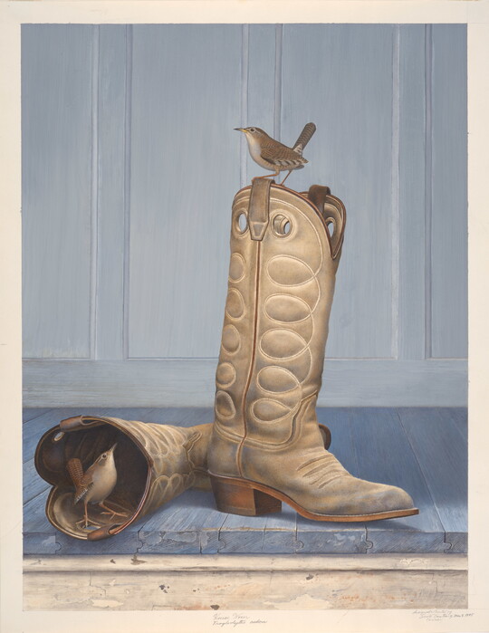 Born in Rochester, Minnesota, on New Year’s Eve, 1942, Scott and Stuart Gentling moved with their family to Fort Worth, Texas, at the age of 5. They began collaborating on creative endeavors soon after and became professional artists in their twenties. In parallel careers that spanned more than 40 years, the brothers lived and worked together in Fort Worth, where they built a regional and national reputation for their watercolor paintings. Their artistic interests were far-ranging and included natural history, Aztec Mesoamerica, 18th-century fashion, landscape, and portraiture. The Carter houses more than 80 watercolors by the Gentlings, including the original bird paintings from their best-known project, Of Birds and Texas. The Carter is also home to the Scott and Stuart Gentling Papers, which offers an archive of letters, photographs, and essays by the brothers, along with more than 500 of their drawings and preparatory studies.