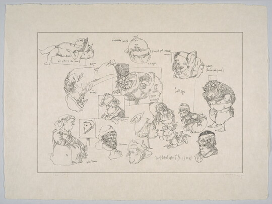 Founded by artist June Wayne in Los Angeles in 1960, the Tamarind Lithography Workshop was an effort to revitalize the printmaking medium of lithography as a fine art in the United States. Through artist residencies and fellowships, Tamarind trained a pool of master artisan-printers in the United States and offered visiting artists of diverse styles an opportunity to learn and work with the medium. (The program, now known as the Tamarind Institute, continues today at the University of New Mexico.)