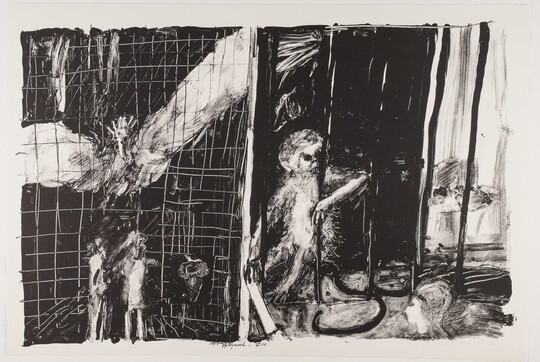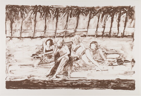 Founded by artist June Wayne in Los Angeles in 1960, the Tamarind Lithography Workshop was an effort to revitalize the printmaking medium of lithography as a fine art in the United States. Through artist residencies and fellowships, Tamarind trained a pool of master artisan-printers in the United States and offered visiting artists of diverse styles an opportunity to learn and work with the medium. (The program, now known as the Tamarind Institute, continues today at the University of New Mexico.)