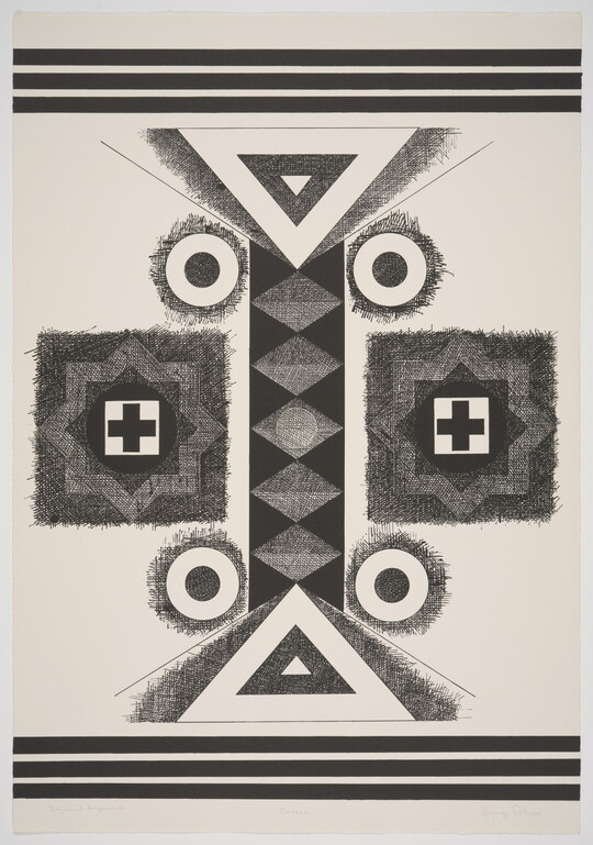 Founded by artist June Wayne in Los Angeles in 1960, the Tamarind Lithography Workshop was an effort to revitalize the printmaking medium of lithography as a fine art in the United States. Through artist residencies and fellowships, Tamarind trained a pool of master artisan-printers in the United States and offered visiting artists of diverse styles an opportunity to learn and work with the medium. (The program, now known as the Tamarind Institute, continues today at the University of New Mexico.)