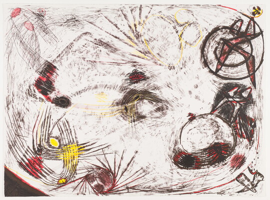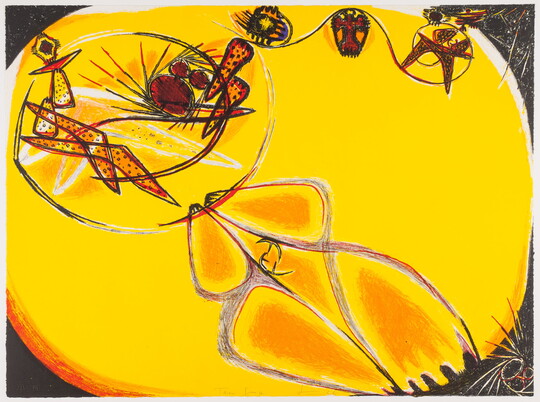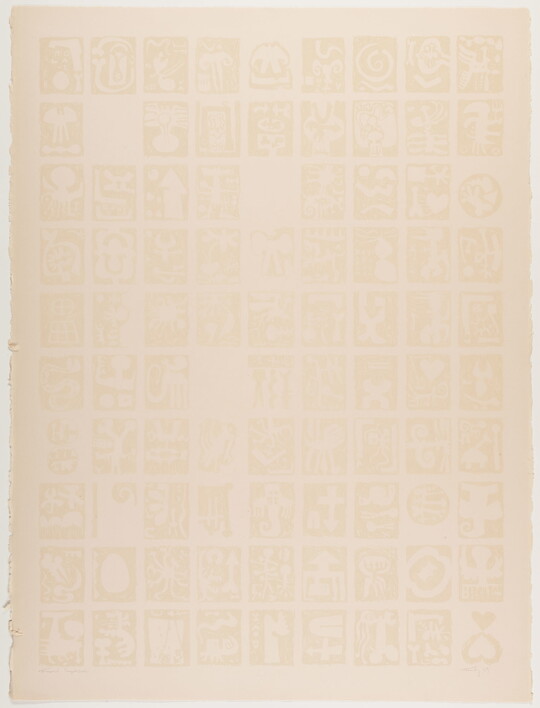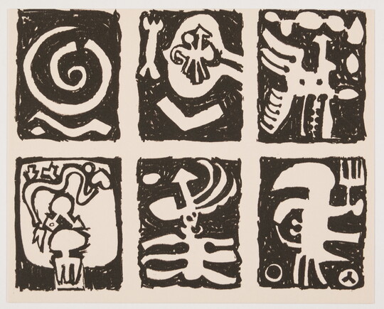 Founded by artist June Wayne in Los Angeles in 1960, the Tamarind Lithography Workshop was an effort to revitalize the printmaking medium of lithography as a fine art in the United States. Through artist residencies and fellowships, Tamarind trained a pool of master artisan-printers in the United States and offered visiting artists of diverse styles an opportunity to learn and work with the medium. (The program, now known as the Tamarind Institute, continues today at the University of New Mexico.)