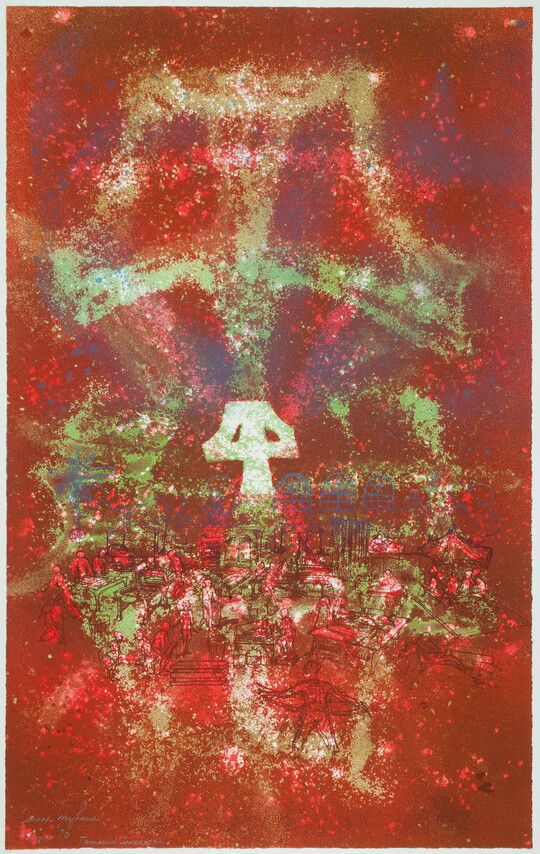 Founded by artist June Wayne in Los Angeles in 1960, the Tamarind Lithography Workshop was an effort to revitalize the printmaking medium of lithography as a fine art in the United States. Through artist residencies and fellowships, Tamarind trained a pool of master artisan-printers in the United States and offered visiting artists of diverse styles an opportunity to learn and work with the medium. (The program, now known as the Tamarind Institute, continues today at the University of New Mexico.)