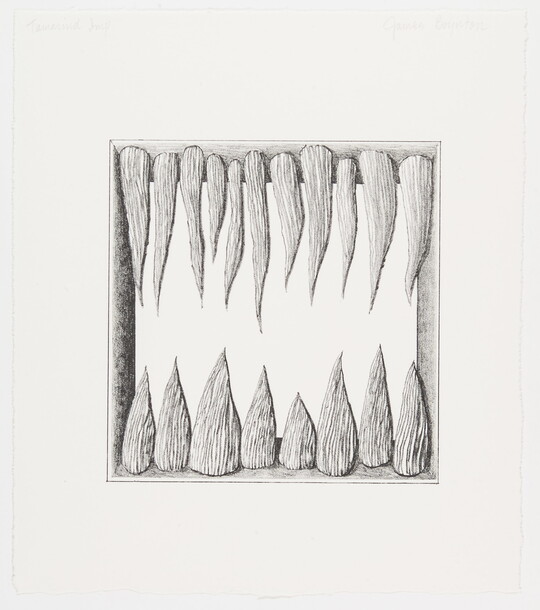 Founded by artist June Wayne in Los Angeles in 1960, the Tamarind Lithography Workshop was an effort to revitalize the printmaking medium of lithography as a fine art in the United States. Through artist residencies and fellowships, Tamarind trained a pool of master artisan-printers in the United States and offered visiting artists of diverse styles an opportunity to learn and work with the medium. (The program, now known as the Tamarind Institute, continues today at the University of New Mexico.)