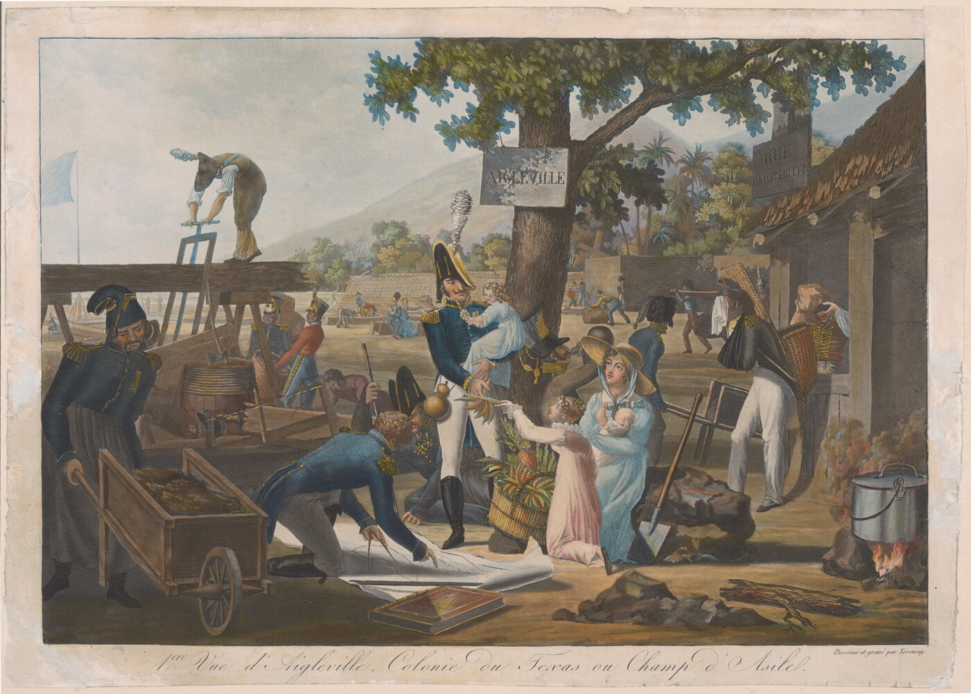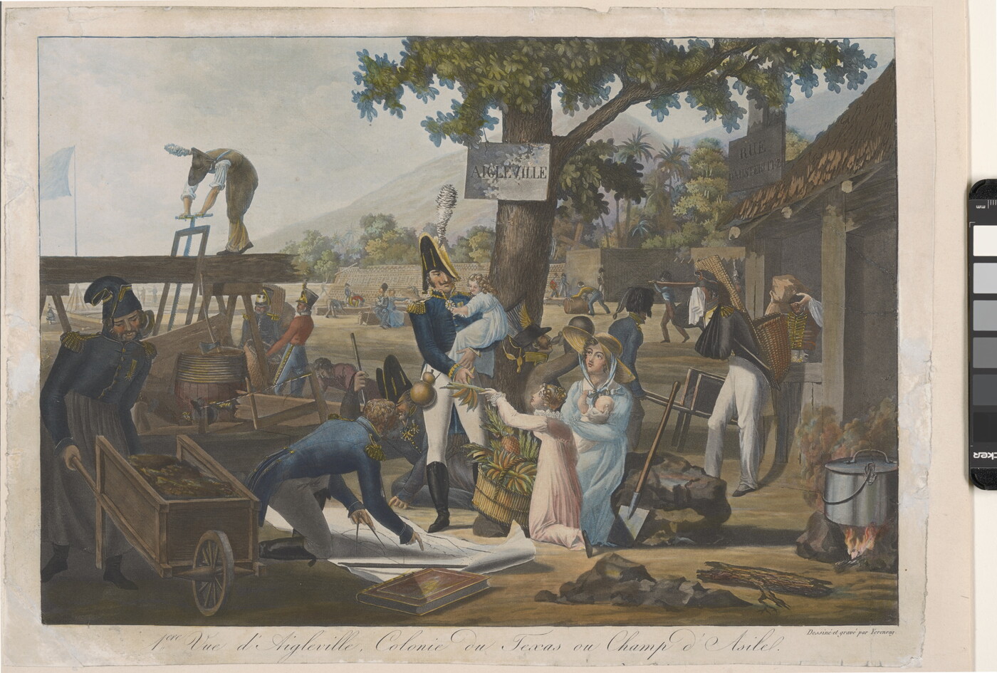l.c.: 1ere. Vue d'Aigleville, Colonie du Texas ou Champ d'Asile.