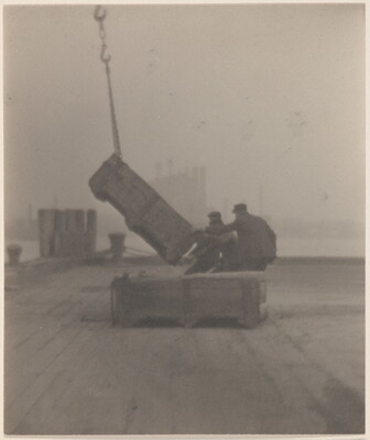 2nd Mount Verso: 2 Men, 2 Crates on Dock, NYC. \ #7.