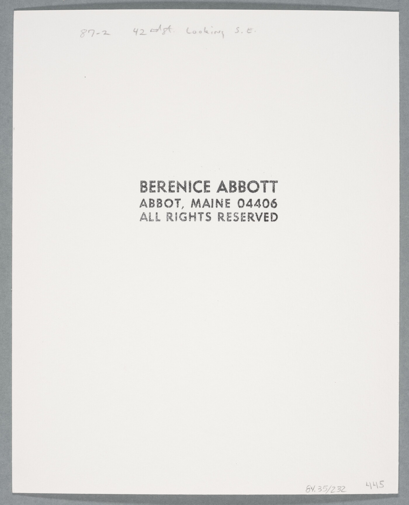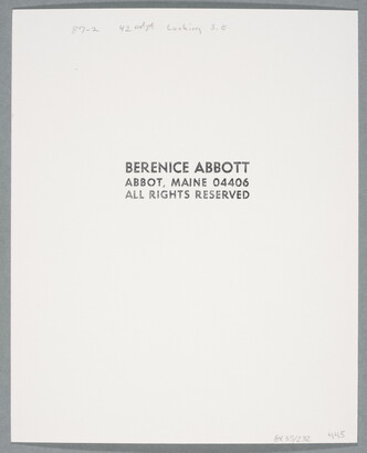 c. stamp: BERENICE ABBOTT \ ABBOT, MAINE 04406 \ ALL RIGHTS RESERVED