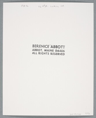 c. stamp: BERENICE ABBOTT \ ABBOT, MAINE 04406 \ ALL RIGHTS RESERVED