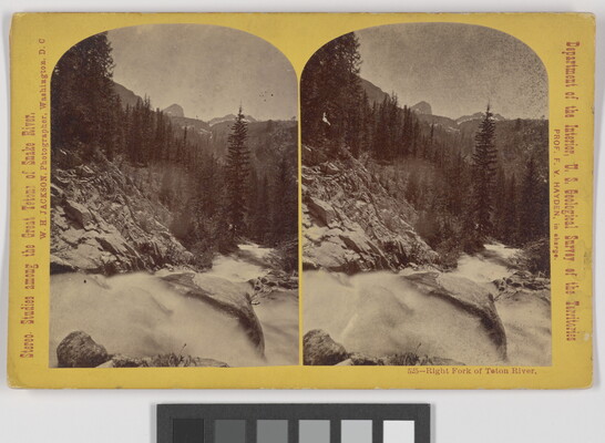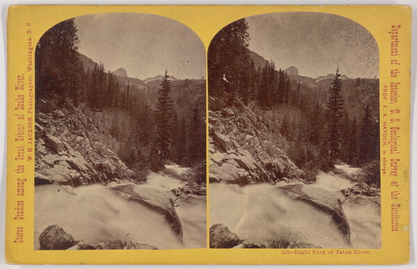 l.l. to u.l. printed along left edge: Stereo Studies among the Great Tetons of Snake River, \ W.H. JACKSON, Photographer, Washington, D.C.